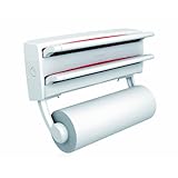 Keeping plastic wrap, foil and paper towels close at hand, the Leifheit Rolly Mobil Wall-Mounted Roll Holder is an attractive way to store these necessities, yet keep them close at hand. Food preparation and clean up is a breeze with this user-friendly, wall-mounted roll holder. Made of clean white plastic to match any kitchen decor, the roll holder features special blades for sharper cutting-eliminating wasted end-of-the-roll mess-simply tear off at the cutting blades for a clean, untangled piece of foil or plastic wrap. Well thought-out in construction, replacing used rolls is easy and hassle-free. The paper towel holders are removable from the unit, making for an added space-saving option. Fits all standard kitchen plastic wrap, foil and paper towel rolls. Read more