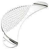 Well designed for draining liquids, this stainless-steel sieve has a crescent shape, so it works with various sizes of pots and bowls. Simply place the sieve over the vessel's rim, then tilt and pour. The handles on either side keep your hands away from a hot pan. Made in Italy, the sieve is dishwasher safe. Small sieve is 9 1/2" wide. Large sieve is 13" wide. Read more